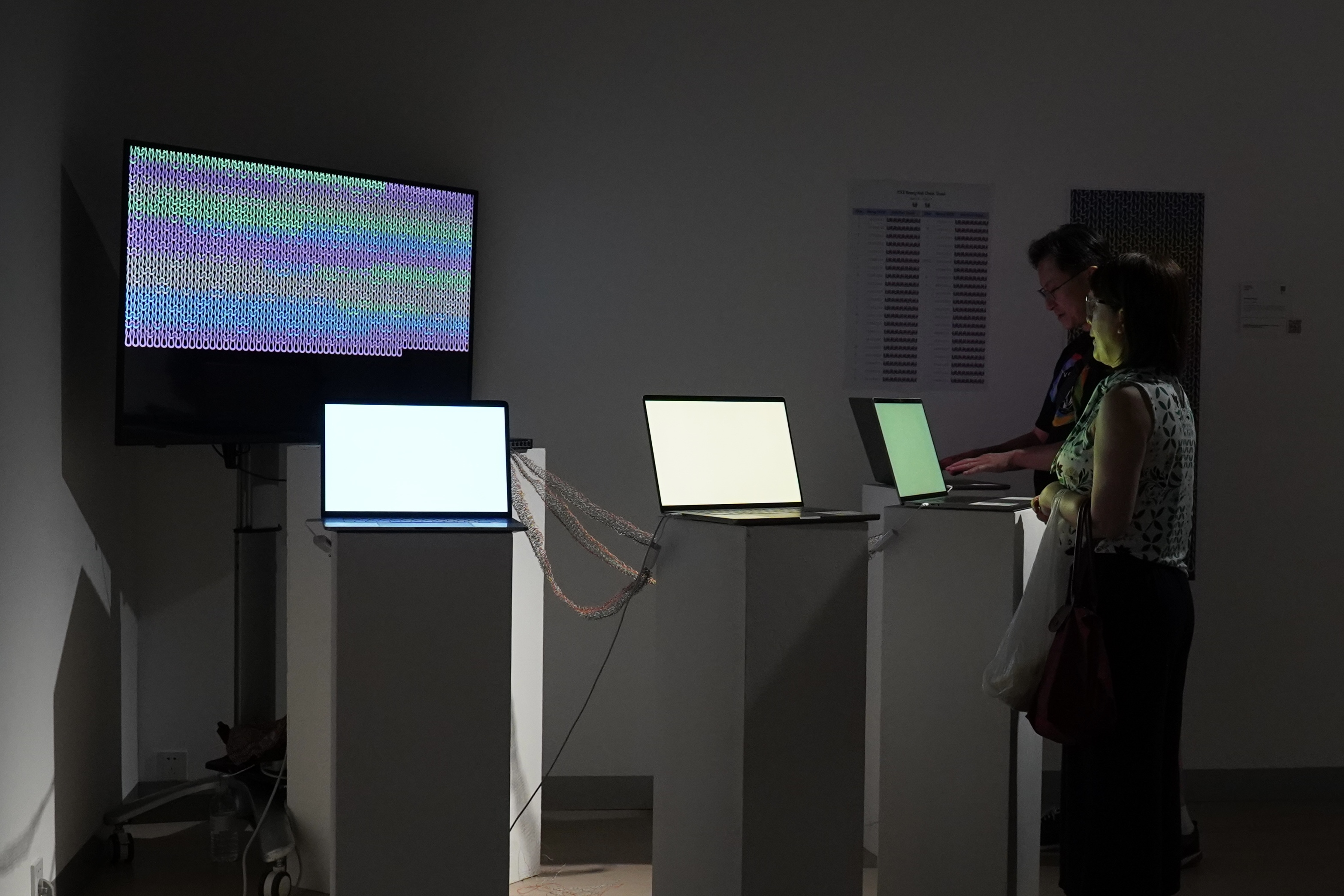 Knitworks is an interactive installation that invites users to submit messages to a live chatroom. Each message is converted into binary code and translated into a visual sequence of knits and purls, the two fundamental building blocks of any knitted fabric.